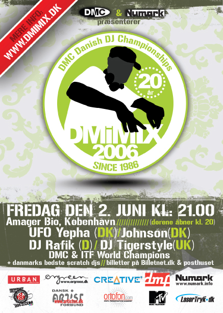 I år er det 20 år siden det første DM i Mix blev afholdt og lige siden dengang har arrangementet været en af hovedårsagerne til den skarpe konkurrencementalitet og standard vi ser blandt danske DJs. Fredag d. 2. juni kl. 21:00 skal vi have kåret Danmarks bedste DJ i Amager Bio og billetterne kan købes via billetnet.dk eller på posthuset. Se flyer/plakat i stort format.