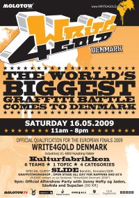 Nu på lørdag bliver Nykøbing Falster mere farvestrålende, når verdens største graffitikonkurrence Write4Gold kommer til byen. Syv graffiti crews fra hele landet dyster i fire discipliner, om hvem der er mest talentfuld med spraydåserne. Dagen afsluttes med en koncert på Kulturfabrikken med Jøden & Hefty, IdaAida og SupaJan.