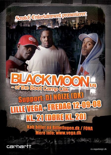 Efter den fornemme solformørkelse i august, er det kun rimeligt, at september kommer til at stå i den sorte månes tegn. Black Moon kommer nemlig til København, først repræsenteret ved DJ Evil Dee, der spiller et sæt til Heat på Rust onsdag d. 10. og to dage efter, fredag d. 12. går det så løs med liveshow fra gruppen på Lille Vega. Det er første gang vi kommer til, at opleve et DJ-sæt fra Mr. “Evil Dee is on the mix c’mon kick it”, og vel ligeledes første gang i lang tid, at 5 ft Accelerator har fået udrejsetilladelse og kommer til landet.